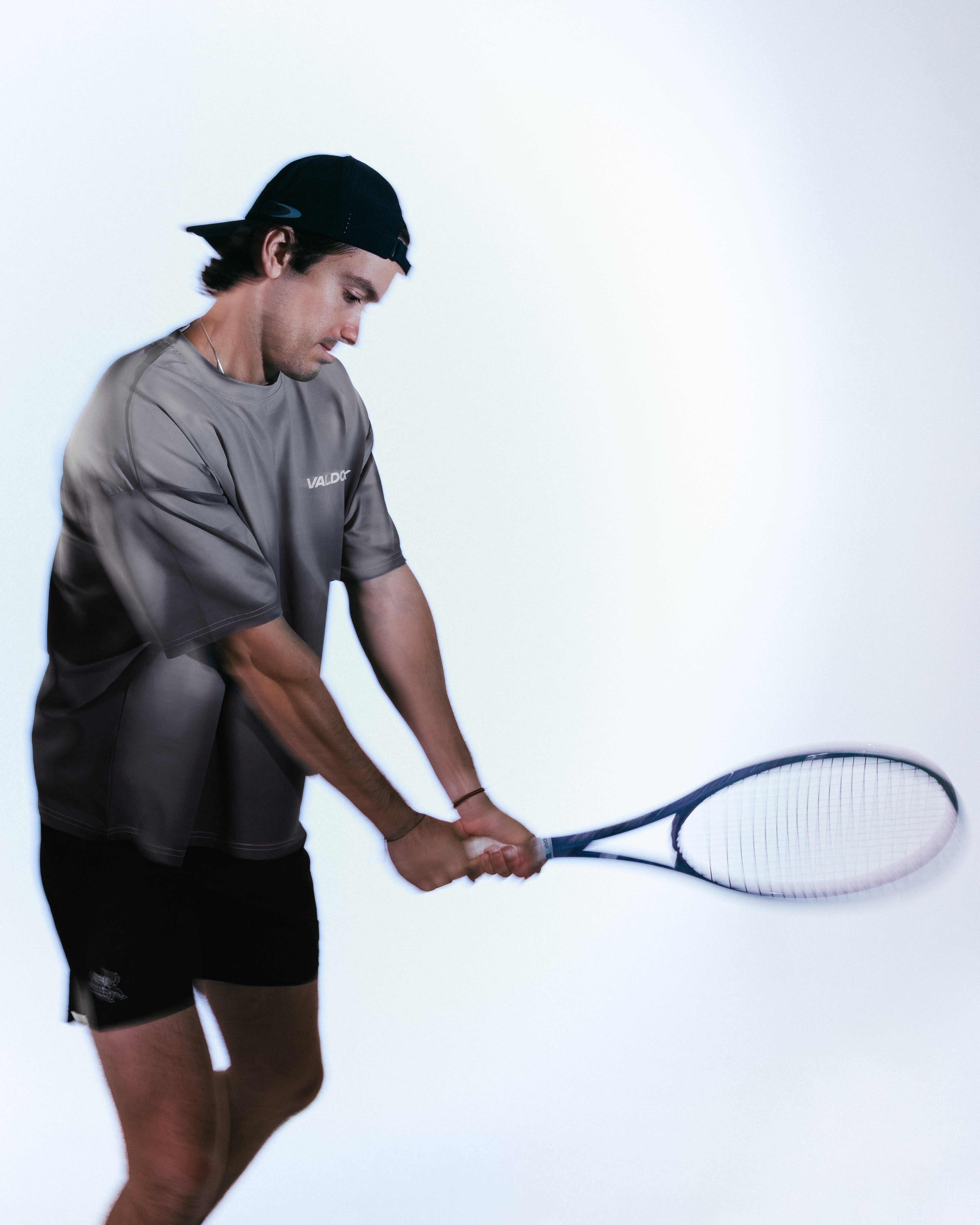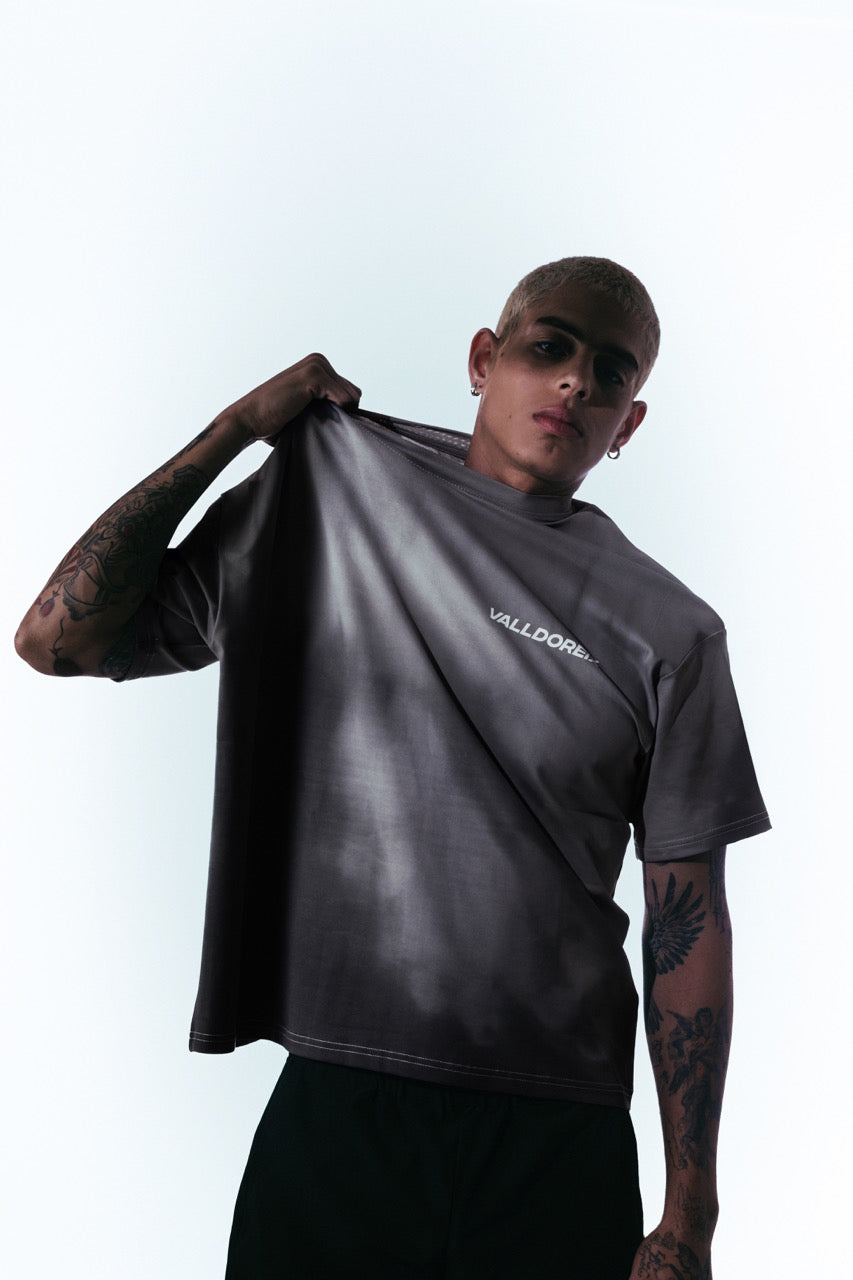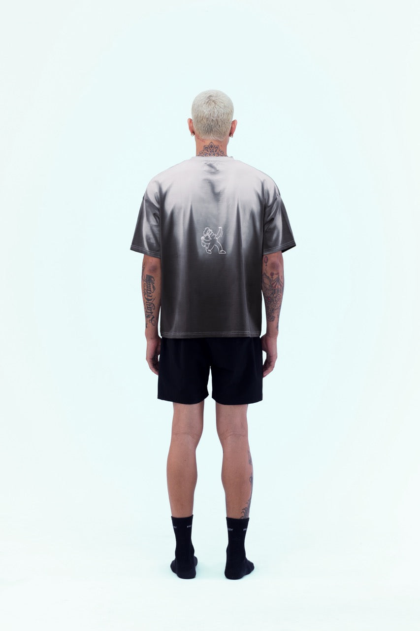 Short-sleeved t-shirt in off-black, crafted from heat-reactive fabric that changes color with warm temperatures and body heat. Boxy fit with a lightweight, breathable feel, built to handle the heat of summer matches. A nod to the bold experimentation of tennis in the early 2000s, reimagined for SS26. Designed in Key Biscayne to stand out on court.