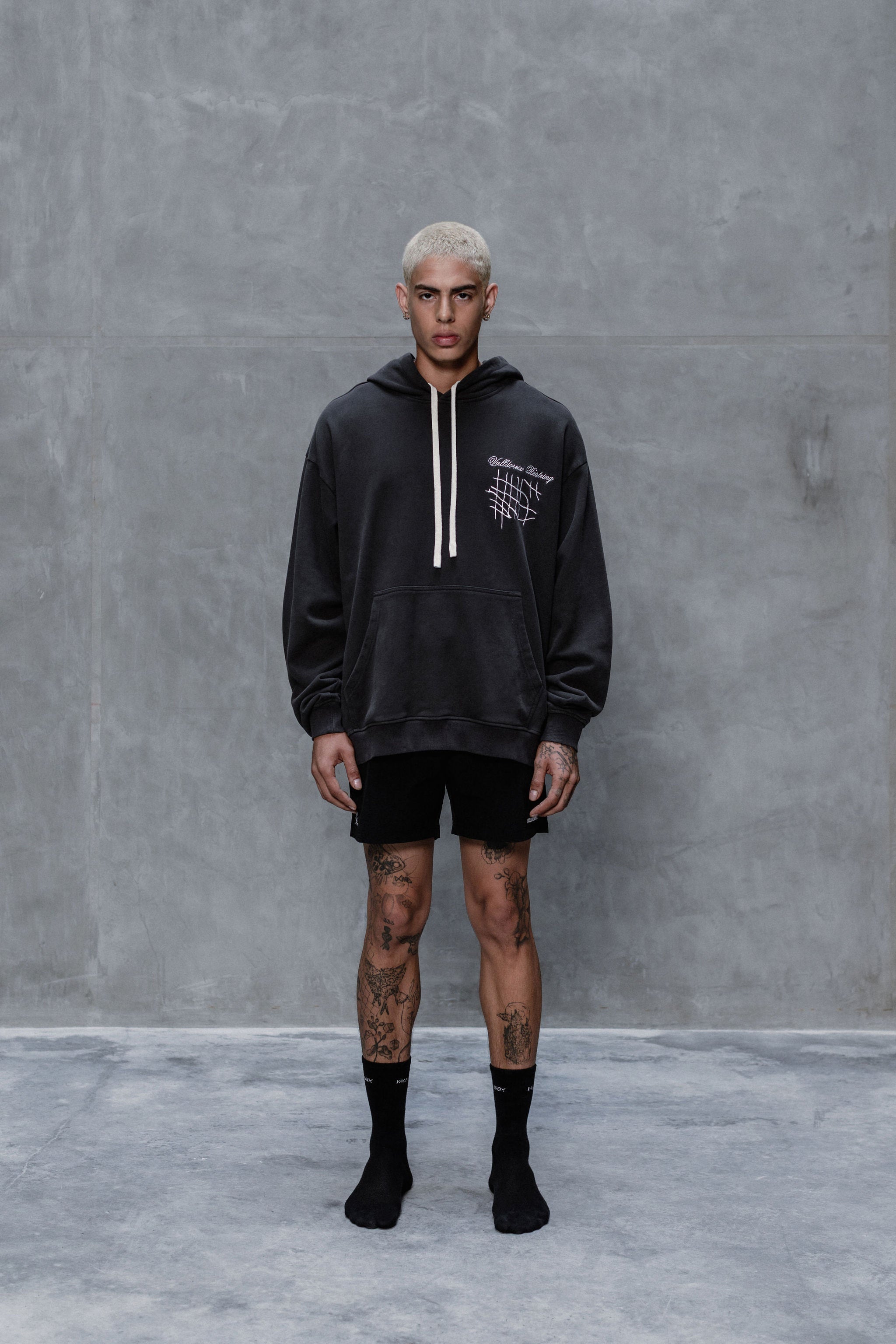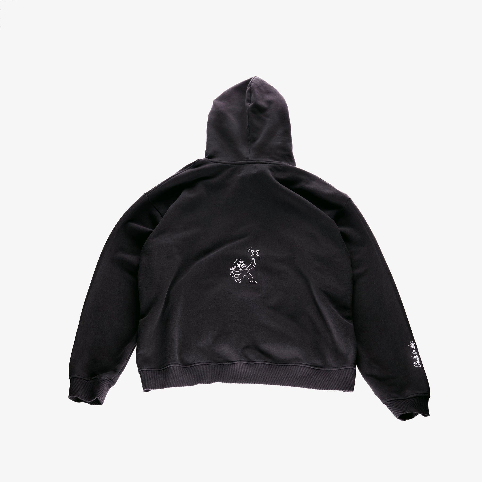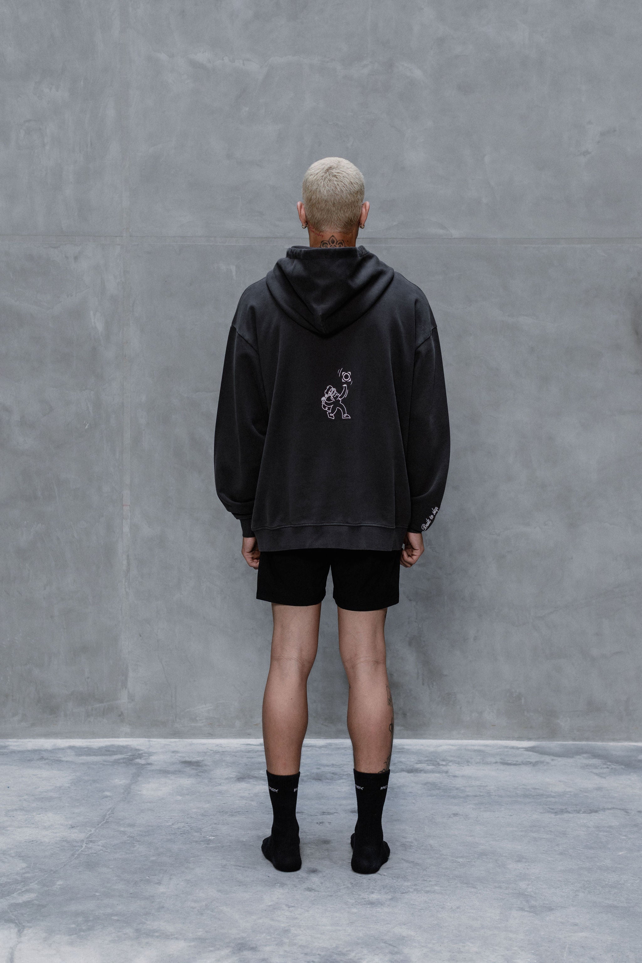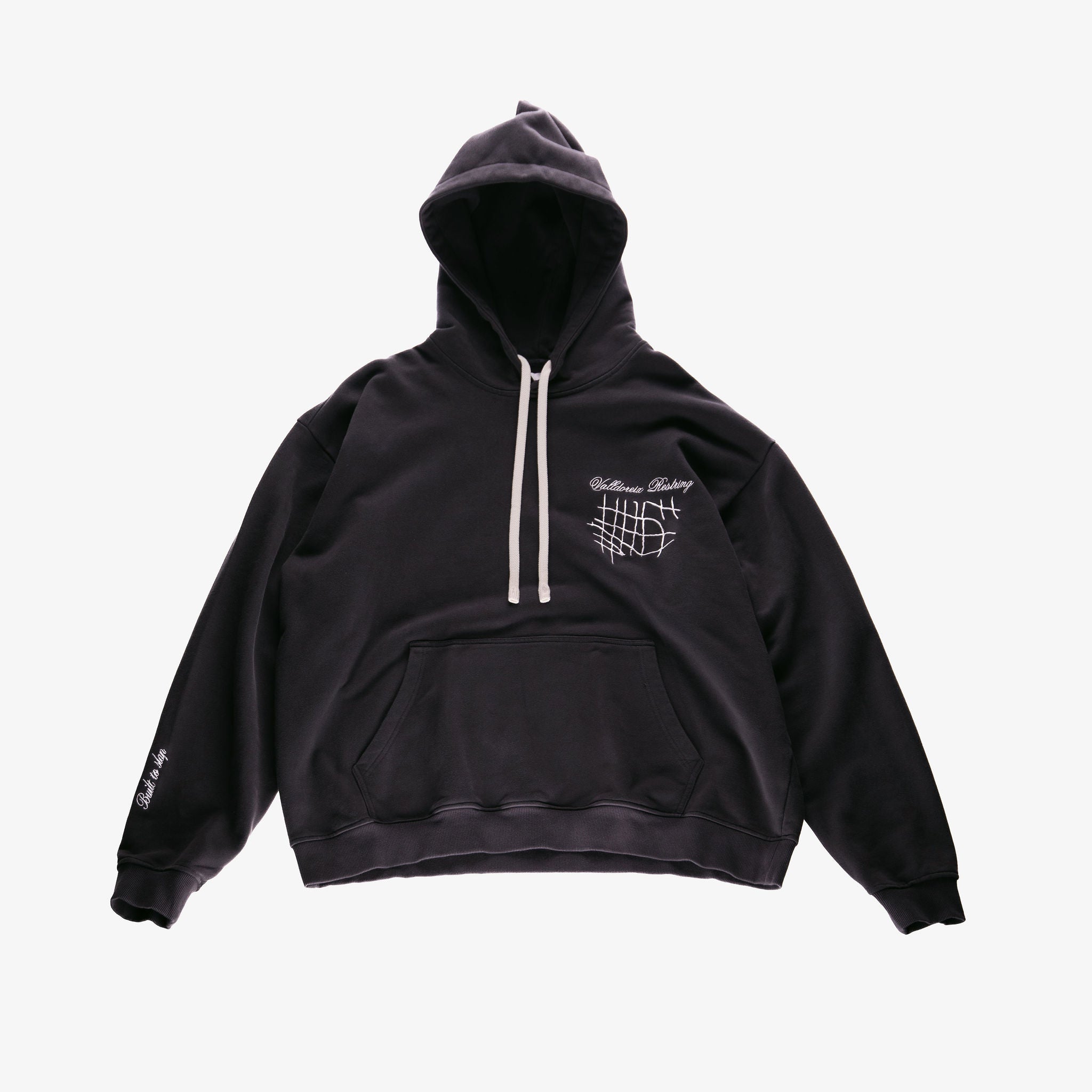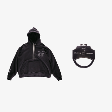 Crafted from 420gsm washed stone French Terry cotton, the hoodie delivers premium weight, structure, and a lived-in finish. It features off-white drawstrings, an embroidered broken strings design on the front, the embroidered Valldoreix x ReString logo on the back, and a bold “Built to SLAP” detail on the right sleeve.